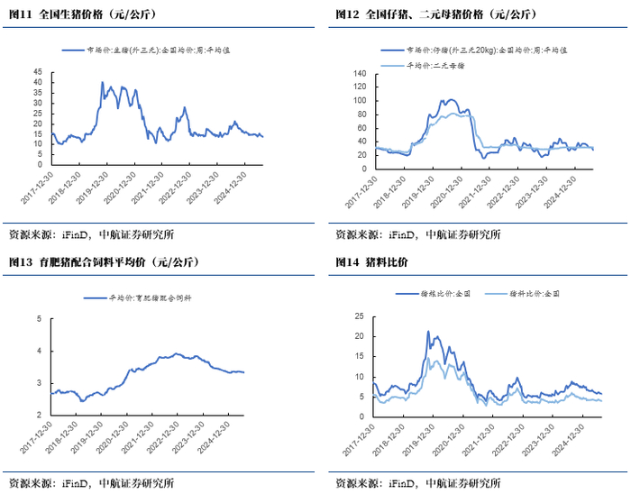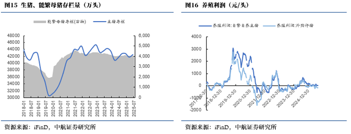 养殖利润:自繁自养利润及周环比跌5.04%,外购仔猪养殖利润周环比跌2.24%。