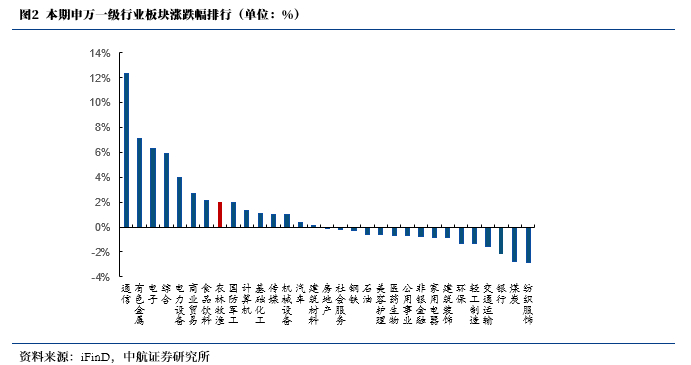 申万农林牧渔行业(2.02%),申万行业排名(8/31);