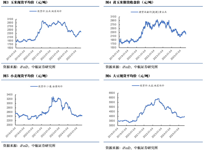 玉米:玉米现货平均价周环比跌0.80%,玉米期货价格周环比涨1.36%。