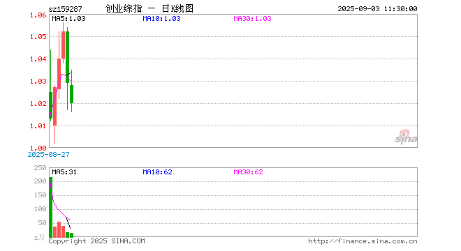 9月3日,截止午间收盘,创业板综ETF博时(159287)跌0.87%,报1.020元,成交额1364.40万元。创业板综ETF博时(159287)重仓股方面,宁德时代截止午盘涨1.03%,东方财富跌2.37%,中际旭创涨3.35%,迈瑞医疗跌0.84%,新易盛跌1.42%,胜宏科技跌3.23%,汇川技术跌2.03%,阳光电源涨8.79%,蓝思科技涨0.27%,同花顺跌1.17%。