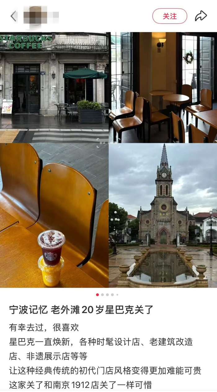 微博上,“宁波老外滩开了21年的星巴克关门”话题迅速登上本地热搜。许多人分享自己在这家星巴克的珍贵回忆。网友“超级无敌顶真大王”表示,“人生的第一杯星巴克就是在这里喝的”;网友“咪咕-迷糊”则称,“星巴克的会员卡就是在这家店办的,以前约会经常去那儿”。小红书上也有不少网友也分享了自己在这家星巴克的回忆。