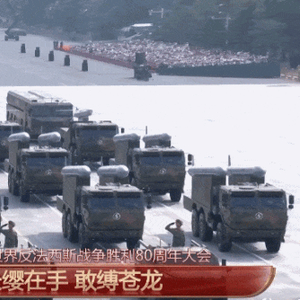 最后一个出场的方队,是由12台受阅装备车搭载着4枚东风-5C液体洲际战略核导弹组成的核导弹第二方队,东风浩荡、雷霆万钧,展现了大国重器的威武雄姿。