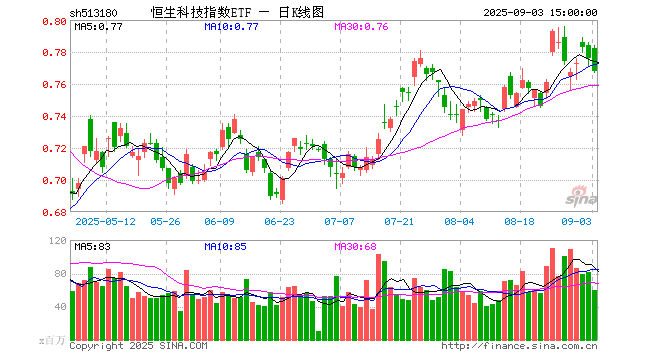 9月3日恒生科技指数ETF(513180)份额增加1.08亿份,最新份额508.76亿份,最新规模389.40亿元