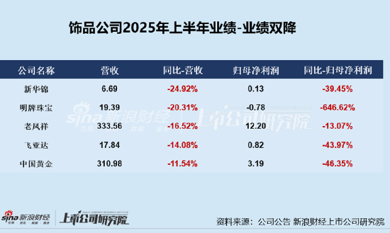 珠宝配饰半年报|业绩总览:半数公司利润下降 中国黄金、飞亚达、老凤祥、明牌珠宝、新华锦业绩双降