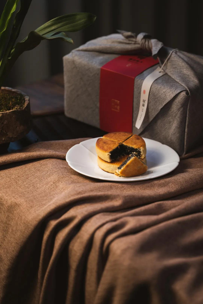 摆上几个“酥月”,金黄澄亮如同小小的月亮,