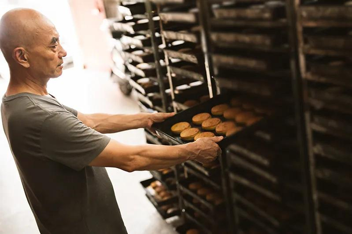 詹师傅十几岁学做月饼,已经做了40多年,他做的酥月地道又美味,香酥清爽不粘牙。