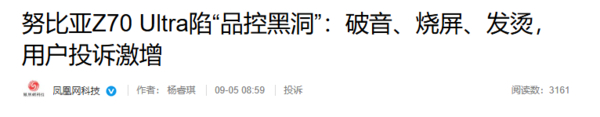 旗舰机变问题机?努比亚Z70 Ultra品控遭多名用户投诉