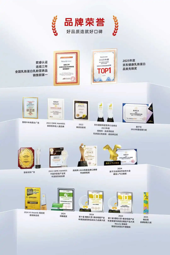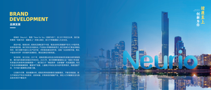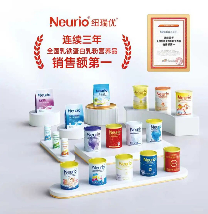 纽瑞优(Neurio)品牌创立于2011年,其名源自“New for You”,寓意“创新为你,健康至上”。作为一个从中国走向世界的健康品牌,纽瑞优既引进全球优质健康产品,也深耕本土研发。2017年,纽瑞优自主研发的乳铁蛋白系列调制乳粉,填补国内高端乳铁蛋白市场空白,这一产品覆盖全生命周期,贯穿孕产母婴、儿童青少年及中老年群体。