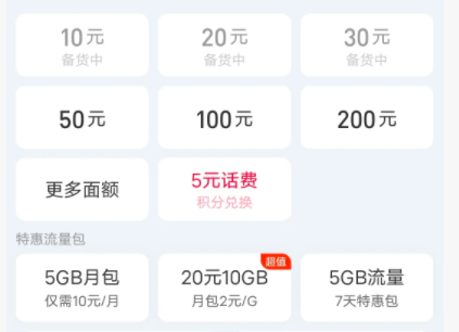 笔者调查发现,想要充值10元面额的话费,不仅入口繁琐,甚至还要付出更高的成本。支付宝、微信、云闪付等常用生活软件上,均只提供50元、100元、200元、300元、500元这五个固定选项,无法自定义金额。一些运营商的官方小程序也设置了最低50元的充值门槛。在以“万能”著称的淘宝平台上以“10元话费”搜索,商品价格普遍高于10元,均价达到11元左右,而在一家通信专营店中,充值10元联通话费的产品,标价达到12.7元,“溢价”比例非常高。想要平价充值小额话费,现在只能下载运营商指定的软件,有的甚至还需要选择“关怀版”才能进行充值。