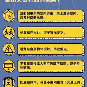 交通出行:驾车出行需减速慢行,保持安全车距,避免急刹车、急转向;遇到积水路段,先观察积水深度,切勿盲目涉水,若车辆在水中熄火,切勿二次启动;公共交通出行者,需关注线路调整通知,预留充足候车时间。