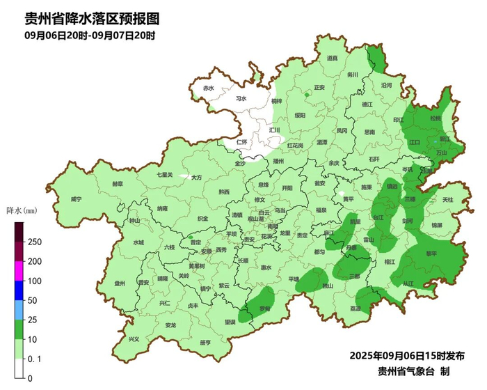 此外,有22个县302站次出现短时强降水,小时雨强最大为威宁县哲觉镇哲觉86.6毫米(2025-09-06 03:00)。13个县出现35℃以上的高温天气,最高气温从江县36.9℃。