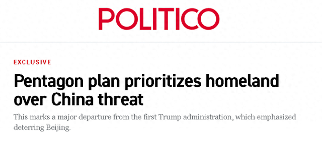 美国“政治新闻网”日前在一篇文章中宣称,美国国防部的政策关注点,正在从中国转移到西半球和美国本土。该媒体认为,这和特朗普第一任期的国防战略的方向有着显著的变化。