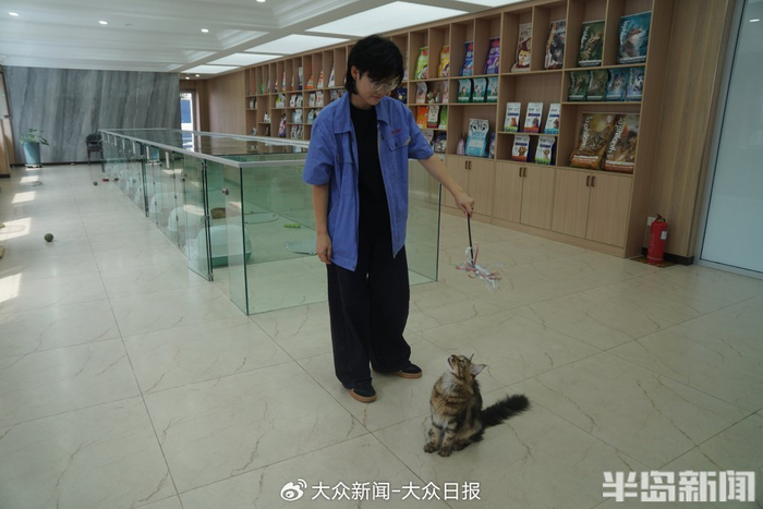 “早上好呀,我的老伙计们!”工厂实验楼一层的一处大房间,质检员宋佳雪推门走进的话音未落,屋里的16只猫咪几乎同时抬起头,其中那只缅因猫派派便像一颗小炮弹一般冲过来。