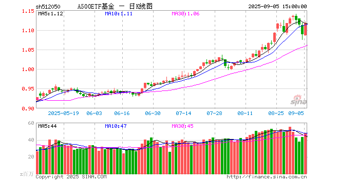 9月5日A500ETF基金(512050)份额增加2.04亿份,最新份额150.95亿份,最新规模168.73亿元