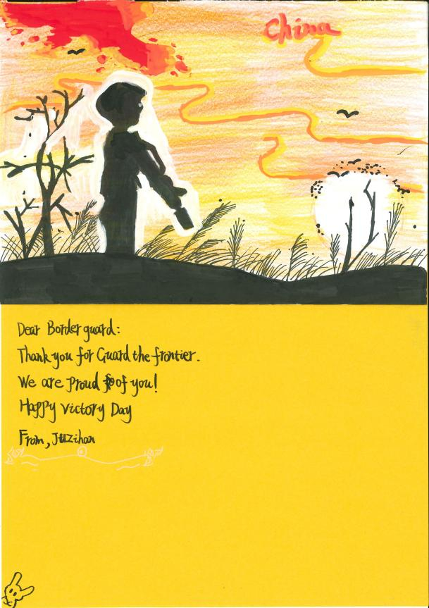 在 “My Thank-you Card” 制作中,孩子们通过用画笔与文字,向军人、边疆战士、警察等 “最可爱的人” 传递敬意。他们在家中精心挑选卡纸、贴纸,用彩笔绘制军装、国旗等,再借助英语老师提供的英语句型支架,一笔一划写下“感恩语”,一张张充满童趣的感恩卡,不仅是英语写作能力的实践成果,更承载着孩子们对守护者的真挚情感。
