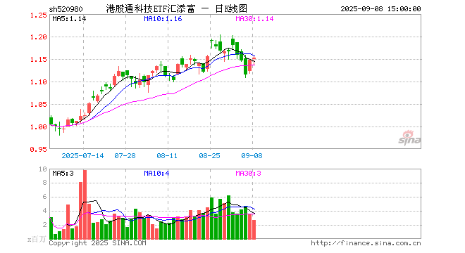 9月8日港股通科技ETF汇添富(520980)份额增加200.00万份,最新份额31.14亿份,最新规模35.72亿元