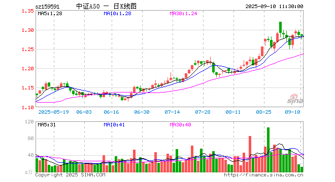 中证A50ETF(159591)跌0.23%,半日成交额1507.48万元