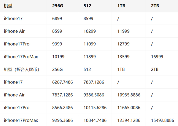 iPhone 17系列国行、港版和台版价格对比:台版最贵?