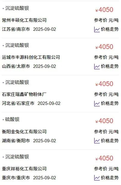 硫酸钡的涨价并非偶发,而是已成常态。以陕西富化为代表的企业在2024年内共提价5次,累计涨幅达750元/吨。贵州红星发展2025年第二季度经营数据也显示,其硫酸钡平均售价为3996.72元/吨,同比增长约20%。