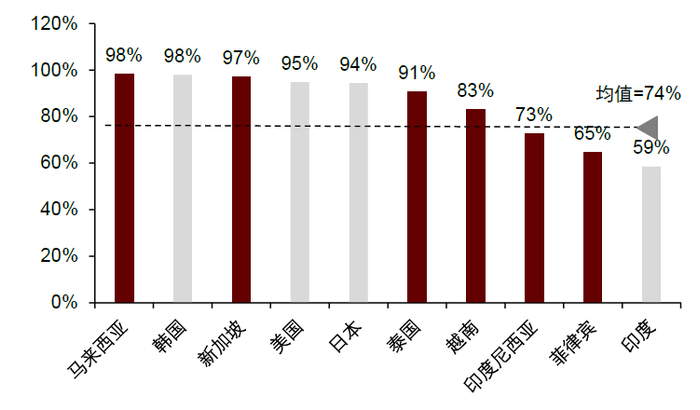 图表4:2024年东南亚六国及部分国家的互联网普及率
