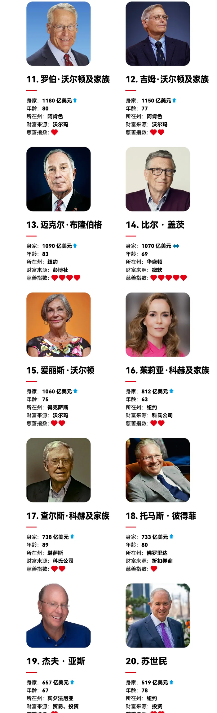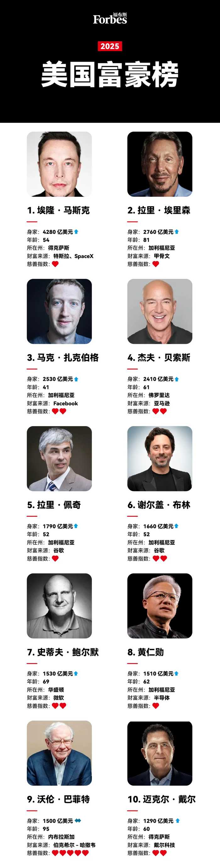2025年福布斯美国富豪榜榜单如下: