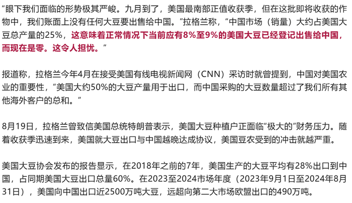 “收获季已至,最大买家中国却未下一单”,美大豆协会主席再次警告:形势极其严峻。