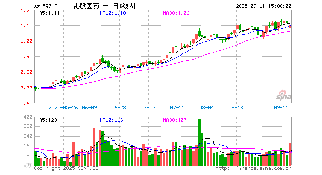 9月11日港股医药ETF(159718)份额增加1400.00万份,最新份额2.43亿份,最新规模2.62亿元