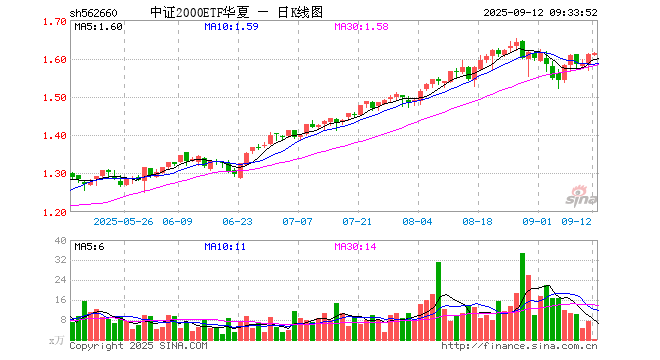 9月12日,中证2000ETF华夏(562660)开盘跌0.12%,报1.608元。中证2000ETF华夏(562660)重仓股方面,大东南开盘跌0.72%,万和电气涨0.59%,高新兴涨1.16%,可立克跌0.71%,天奥电子涨0.19%,万泽股份跌0.79%,锌业股份涨0.26%,海利得跌0.31%,瑞丰光电跌0.34%,锐明技术涨0.79%。
