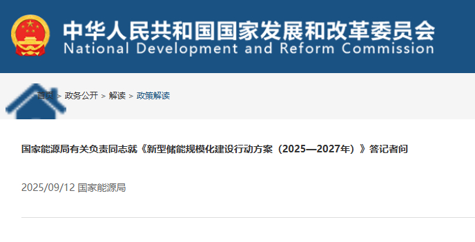 近日,国家发展改革委、国家能源局联合印发了《新型储能规模化建设行动方案(2025—2027年)》(以下简称《行动方案》),记者就此采访了国家能源局有关负责同志。