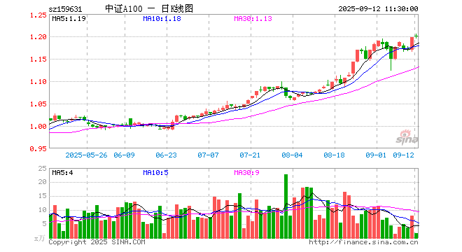 中证A100ETF(159631)涨0.17%,半日成交额197.96万元