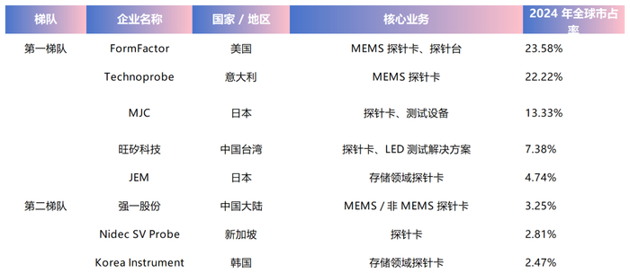 •市场份额:2024 年全球半导体探针卡市场份额 3.21%,MEMS 探针卡全球第五位(TechInsights)。