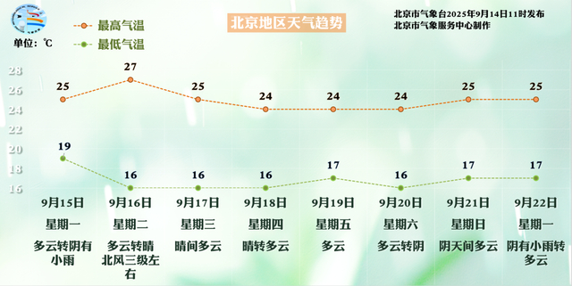 舒爽时节来了!下周北京地区秋凉渐起,最高温度27℃