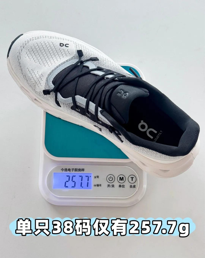 单只鞋子的重量只有257.7g(38码)。