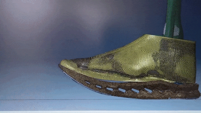 鞋底的“空心豆荚”在受压时形变,压力释放后立即恢复原状。