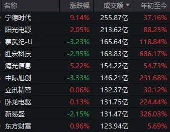 数据显示,“宁王”单日大涨9.14%,成交额255.87亿元,居全市场首位。