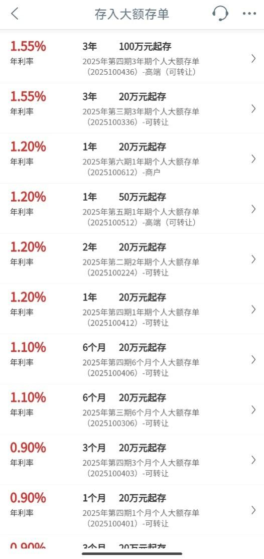 而国有大行的大额存单利率则稍低,例如中国工商银行App中的大额存单显示,3年期产品的年利率为1.55%。