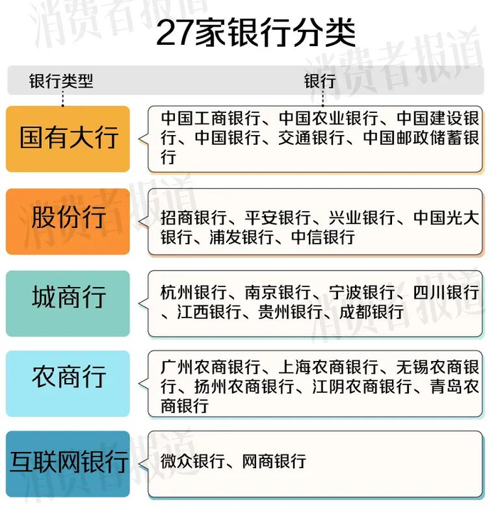 就此,《消费者报道》对27家银行的存款利率进行了汇总与对比,涉及国有大行、股份行、城商行、农商行、互联网银行这五类银行。结果发现,27家银行的定期存款利率全部低于2.0%,最高只有1.85%。其中,在国有大行存1万,一年利息不足100元。
