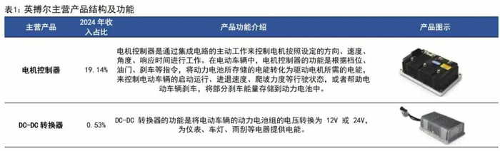 英搏尔主营产品为新能源汽车动力总成、电源总成以及驱动电机、电机控制器、车载充电机、DC-DC转换器等新能源汽车动力域核心零部件。