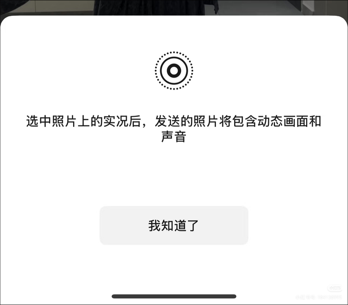 好友浏览点开大图后需点击左下角的“实况”按钮查看完整效果,同时支持将实况照片保存到手机系统相册。该功能正在灰度上线中。