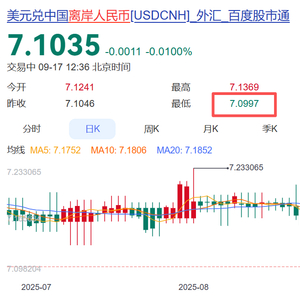 9月17日,离岸人民币兑美元一度升破7.10关口,为去年11月以来首次。