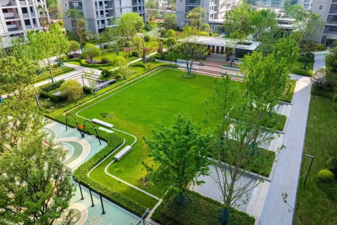位于杭州的越秀·星颂府采用自流平地面加石膏砂浆墙面,搭配踢脚及转角线条、预留预埋洞口加装成品塑料帽,毛坯交付亦见精致。外立面遵循“PDCA”管控原则,实现“铝板装饰一体板”落地应用,品质媲美传统干挂铝板。园林聚焦近人尺度与重点部位,实现整体四季观赏效果,荣获《2025年杭州市园林绿化五星示范项目》。交付前项目完成物业整体移交,达成集中交付到访率100%、零缺陷率92%的美好交付。