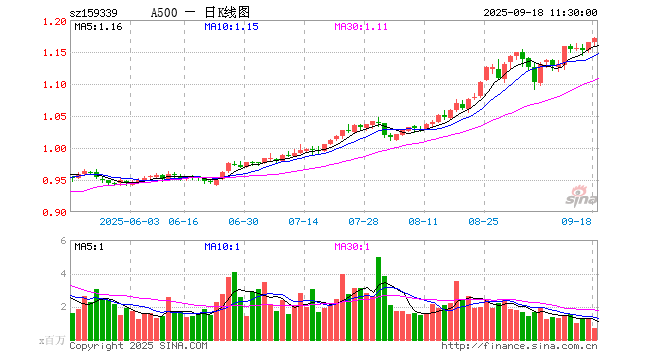 A500ETF(159339)涨0.52%,半日成交额7878.81万元
