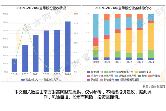 据年报数据显示(如上图),意华股份过去一年实现营业收入60.97亿,同比增长20.51%,近5年复合年增长率16.87%。