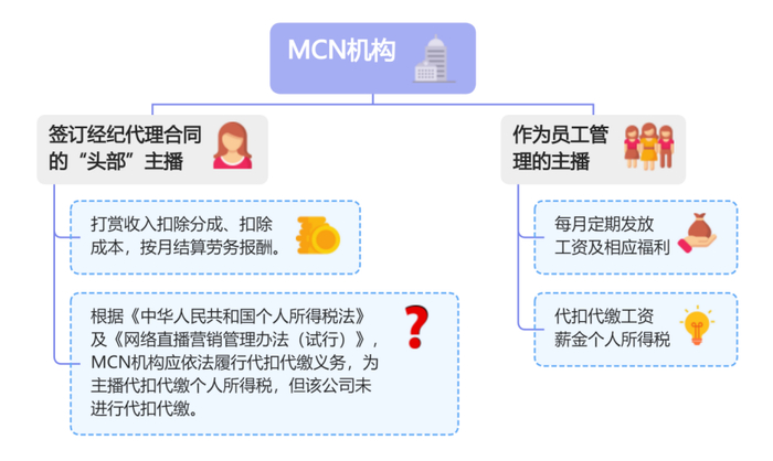 作为一家与某主流直播平台签约的MCN机构,居然没有代扣代缴个人所得税,显然不合常理。