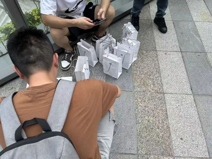 广州天环广场苹果零售店外,部分“黄牛”与拿到新机的用户进行交易