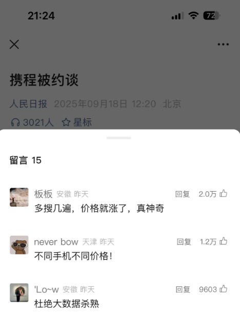 狗蛋见过不少反映携程杀熟的帖子,尤其是反映买机票被杀熟,那些帖子评论区,经常会有自称懂行的网友澄清——