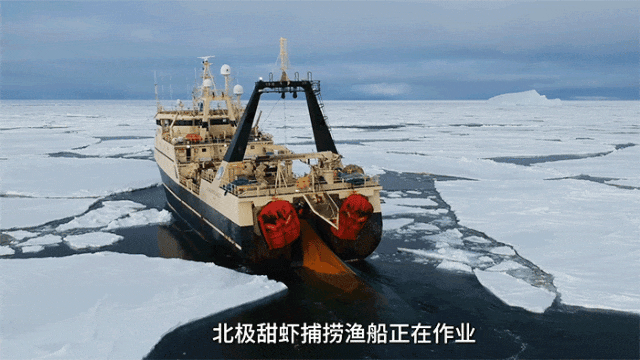 甜虾生长的海域水深浪高,普通小渔船无法进入,需要大型破冰船用拖网进行捕捞。