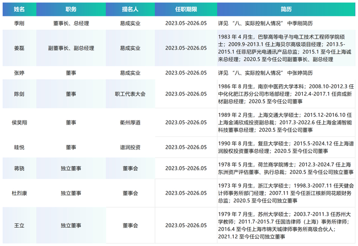 九、董事、监事、高级管理人员情况(含简历)