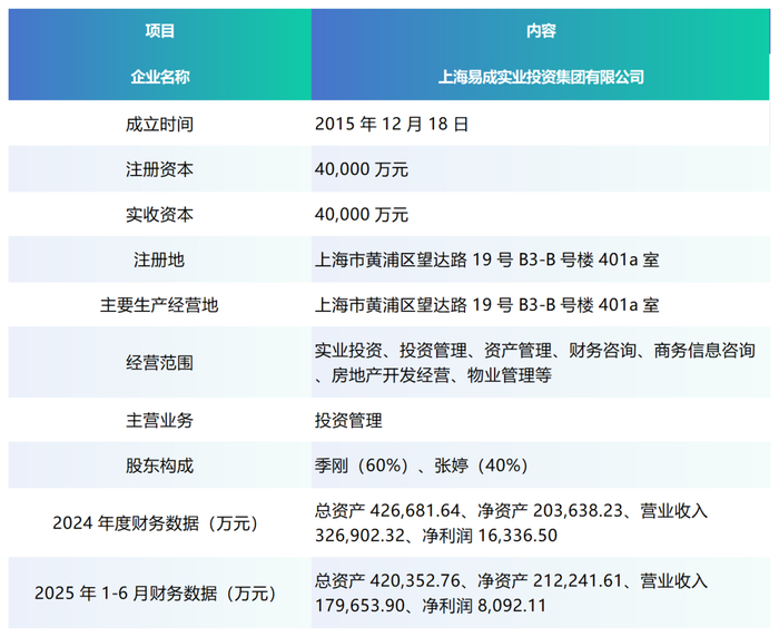 1. 控股股东:上海易成实业投资集团有限公司