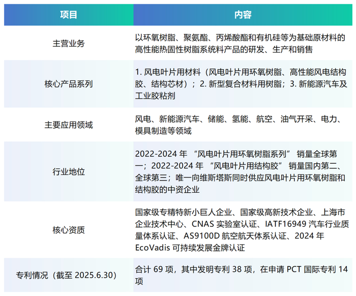 •唯一向国际风电巨头维斯塔斯同时供应风电叶片用环氧树脂和结构胶的中资企业。